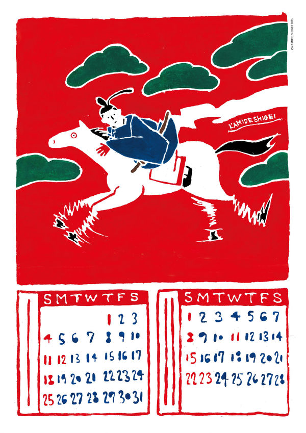 和紙に筒描で染色した原画をカレンダーにした。金沢の酒蔵である福光屋「福正宗 酒歳時記」シリーズの為に作画した絵をカレンダー用に加筆した3枚に、描き下ろし3枚を加えた6枚セット。